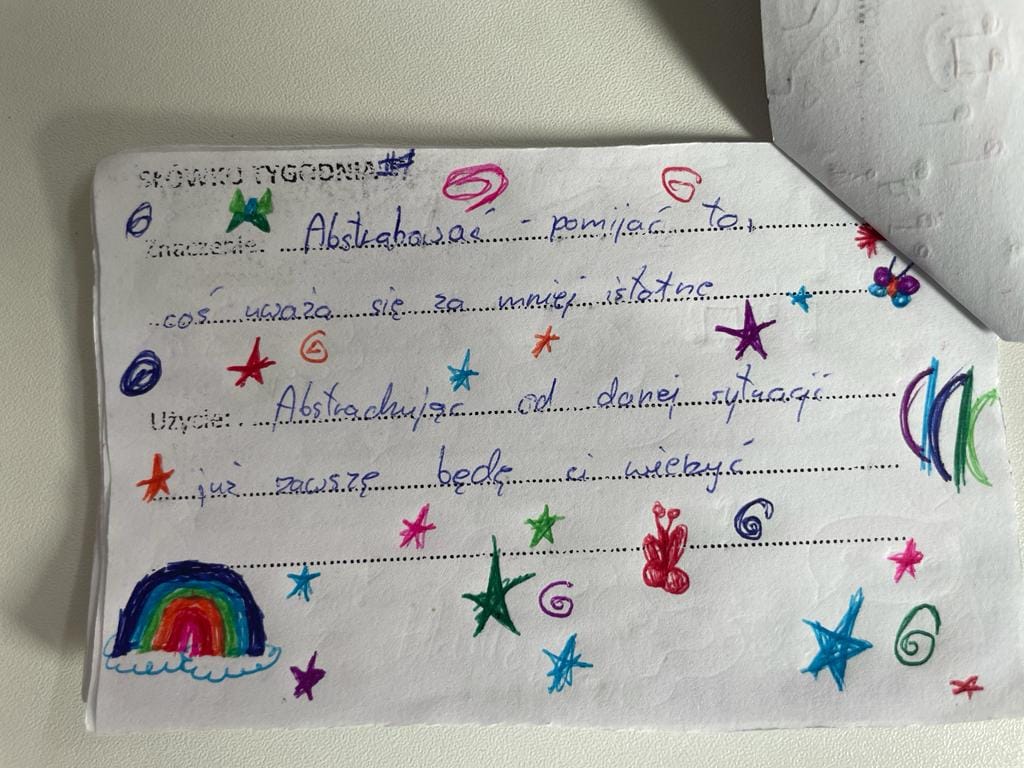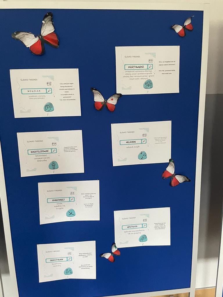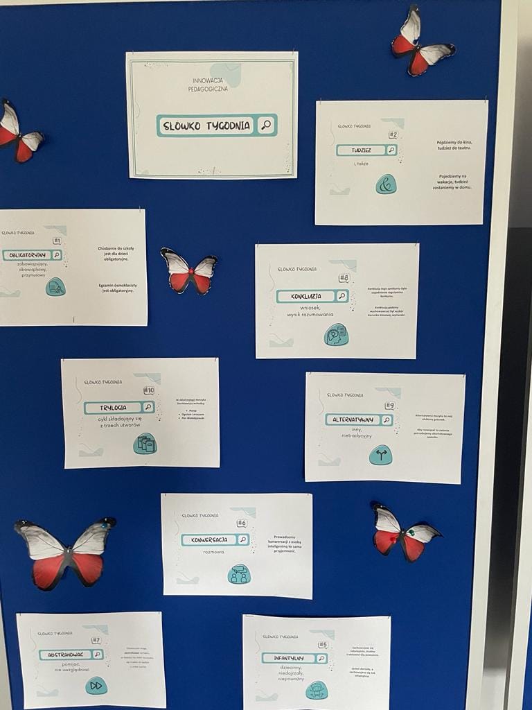 Połączona z nauka zabawa polegała na poznawaniu co tydzień nowego słowa i jego kontekstowego znaczenia. Efekty poszerzania słownictwa i umiejętności jego stosowania sprawdzano w formie quizu rozwiązywanego przez uczennice i uczniów. Najlepiej z nowym zadaniem poradziła sobie Barbara Jamróz z 7 klasy, która tym samym zasłużyła na tytuł Mistrza Trudnego Słówka.