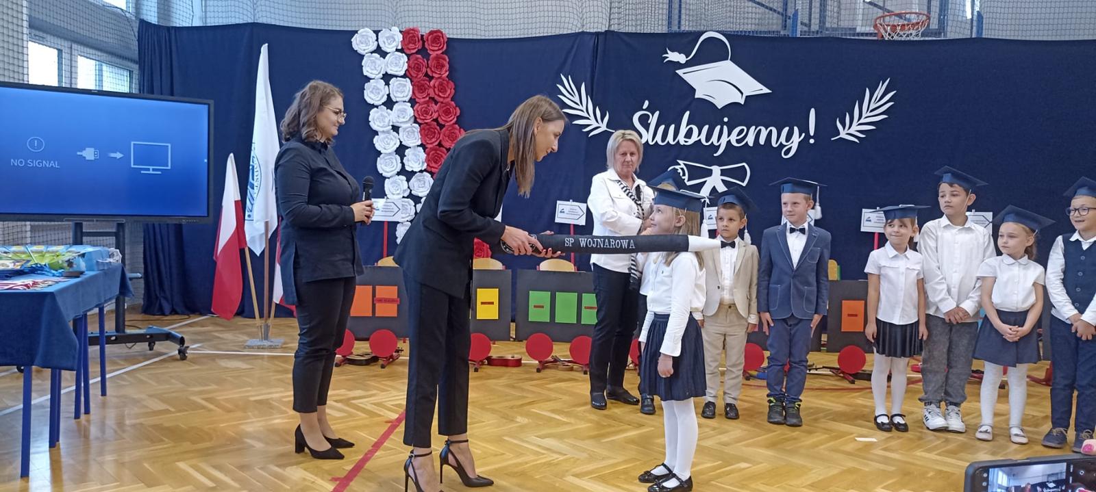 Okazją do tradycyjnej uroczystości był Dzień Edukacji Narodowej. Uczennice i uczniowie z klasy pierwszej przygotowywali się do tego dnia już od dłuższego czasu i dzięki temu podczas uroczystości wszystko poszło zgodnie z planem. Wszyscy w odświętnych strojach złożyli ślubowanie, po którym dyrektor szkoły Aneta Krasińska-Sikoń ogromnym ołówkiem z napisem „SP Wojnarowa” pasowała pierwszoklasistów na uczniów i uczennice szkoły. Legitymacje szkolne, potwierdzające uzyskany status, wręczył pasowanym wójt Leszek Skowron.