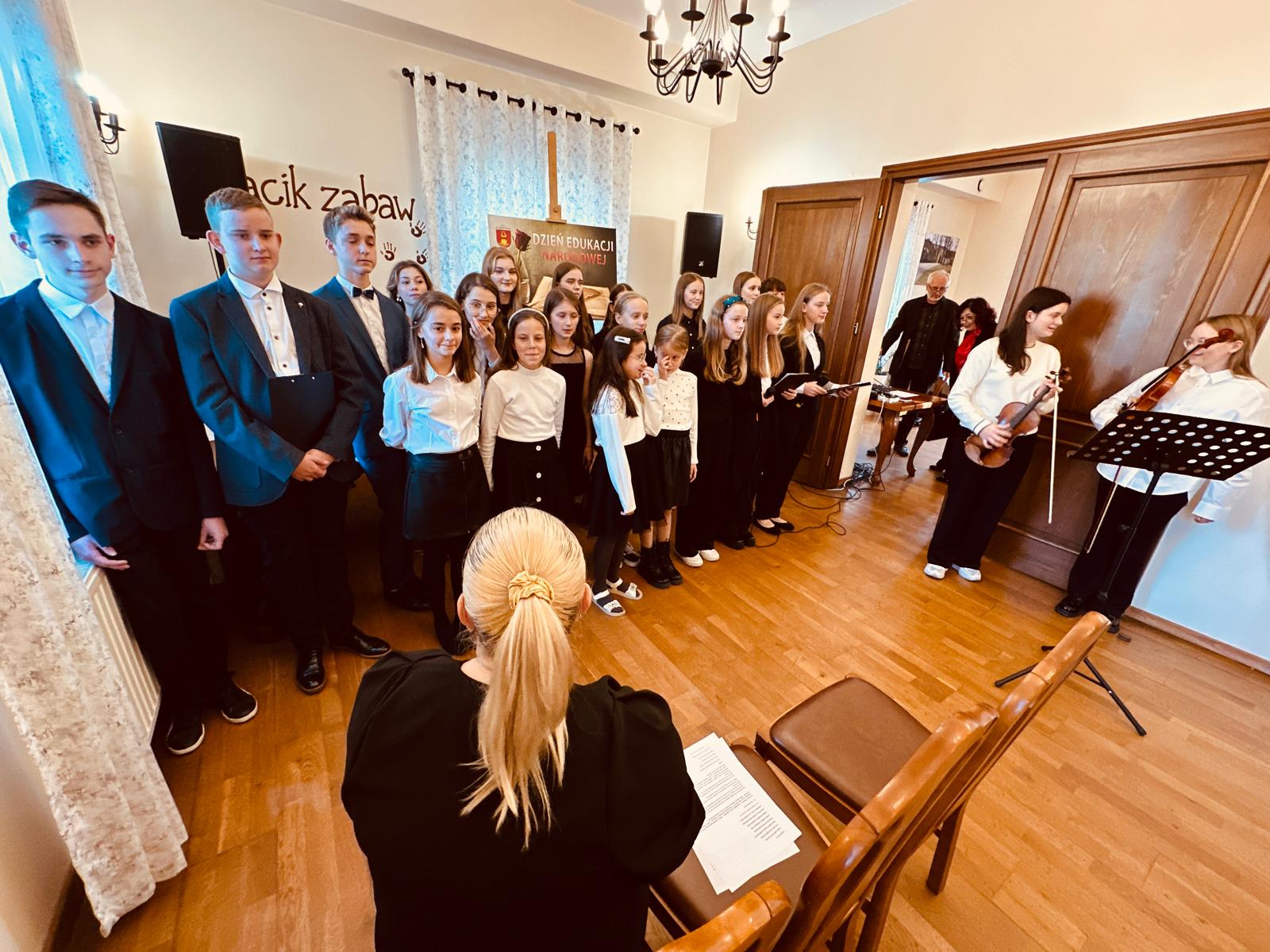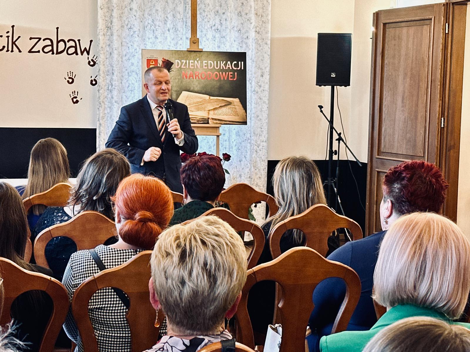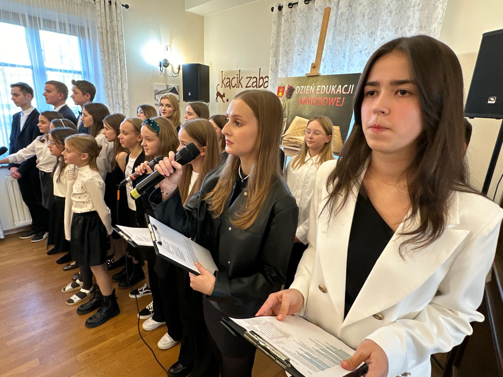 Zanim wyróżnieni odebrali okolicznościowe listy gratulacyjne specjalny okolicznościowy program zaprezentowali uczennice i uczniowie Szkoły Podstawowej w Korzennej. W przeplatanej muzyką recytacjach wskazywali na wyjątkową rolę pedagogów, korzystając przy tym z przemyśleń patrona szkoły Jana Pawła II.