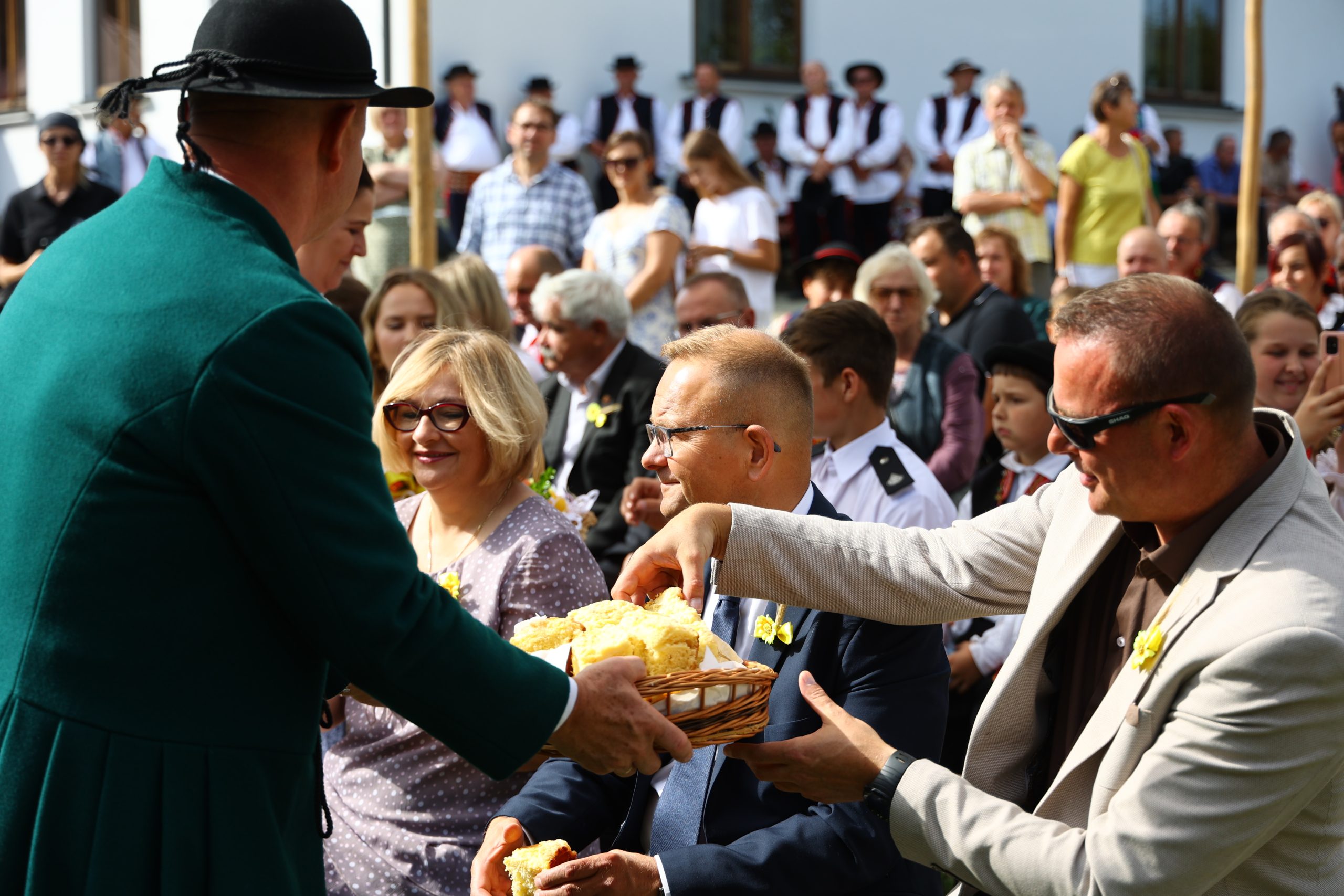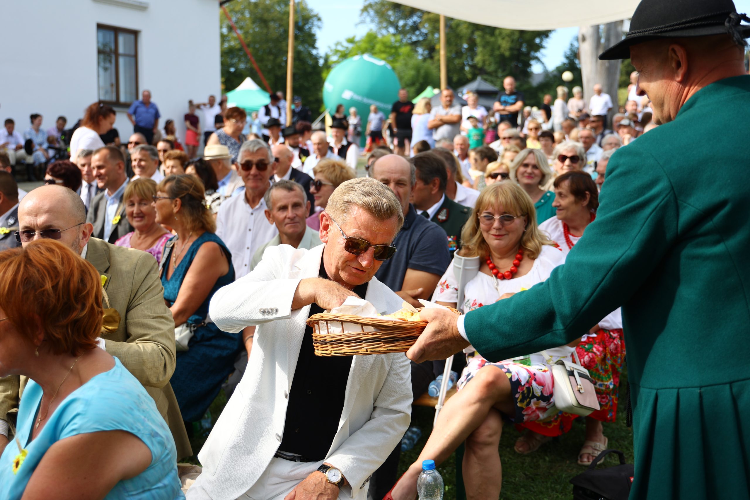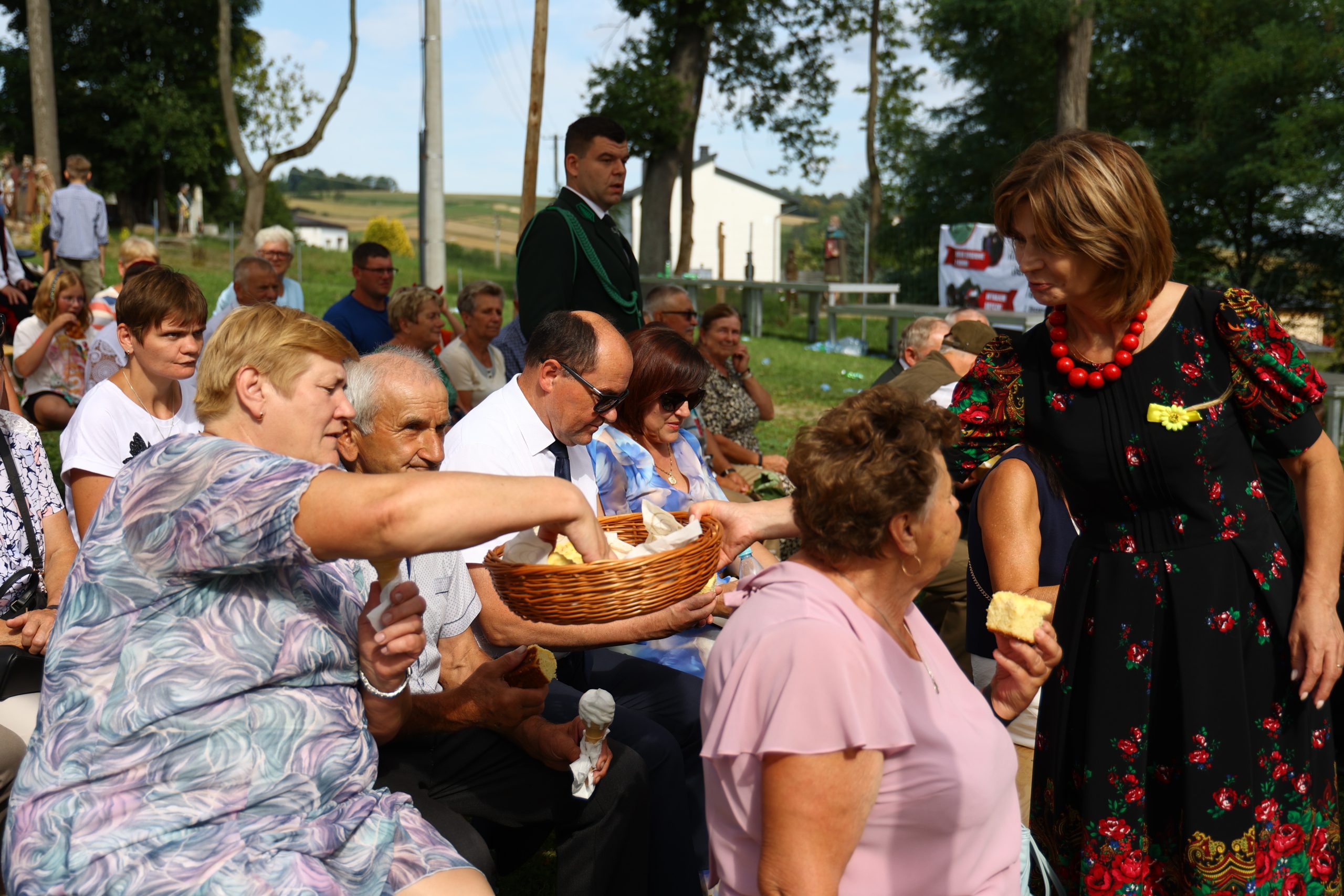 Następnie starostowie dożynek – Maria Bulanda z Lipnicy Wielkiej i Zbigniew Pach z Koniuszowej – przekazali wójtowi chleb wypieczony z tegorocznych plonów. Leszek Skowron odebrał go wraz z żoną, a potem oboje częstowali kołaczami wszystkich uczestników uroczystości.