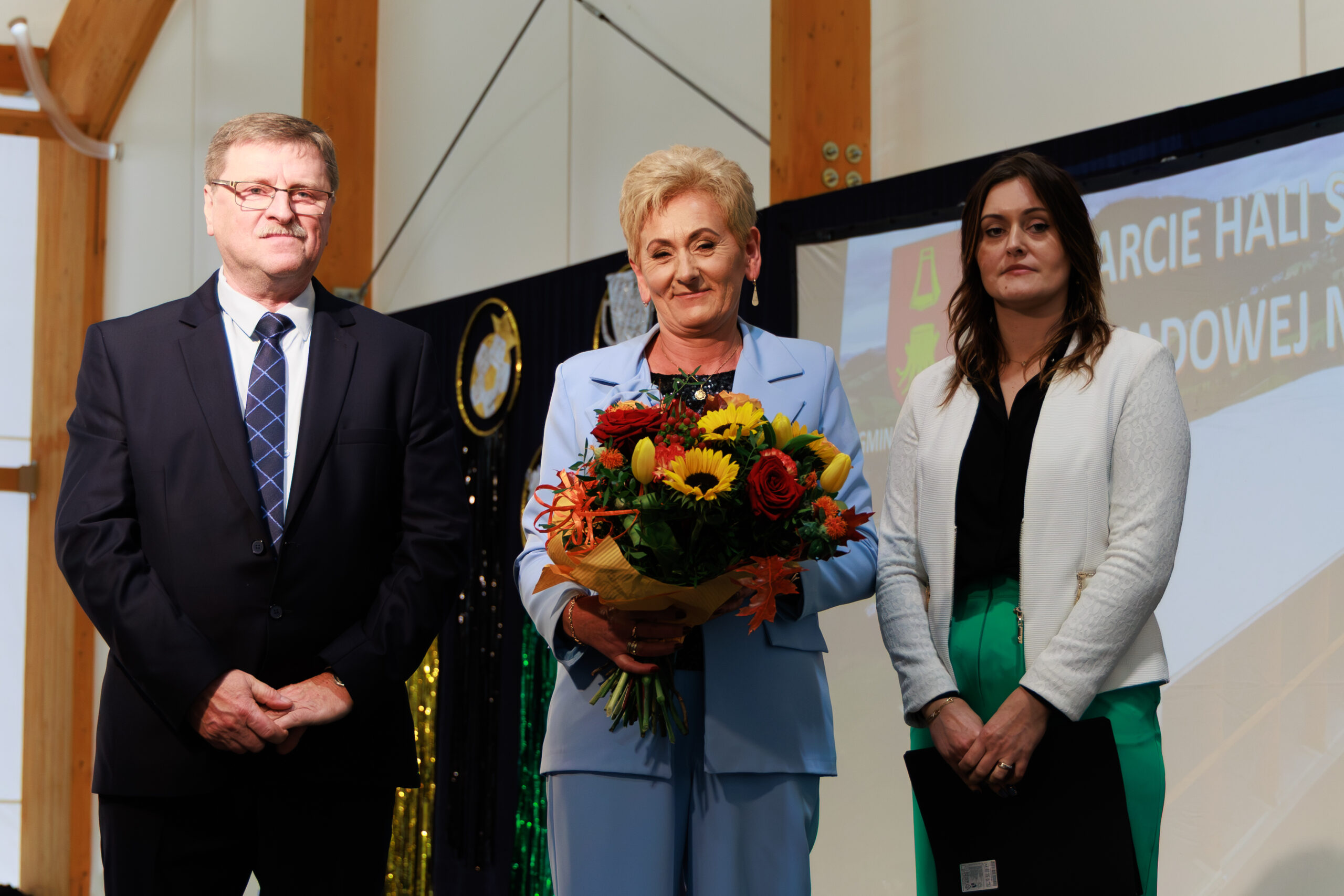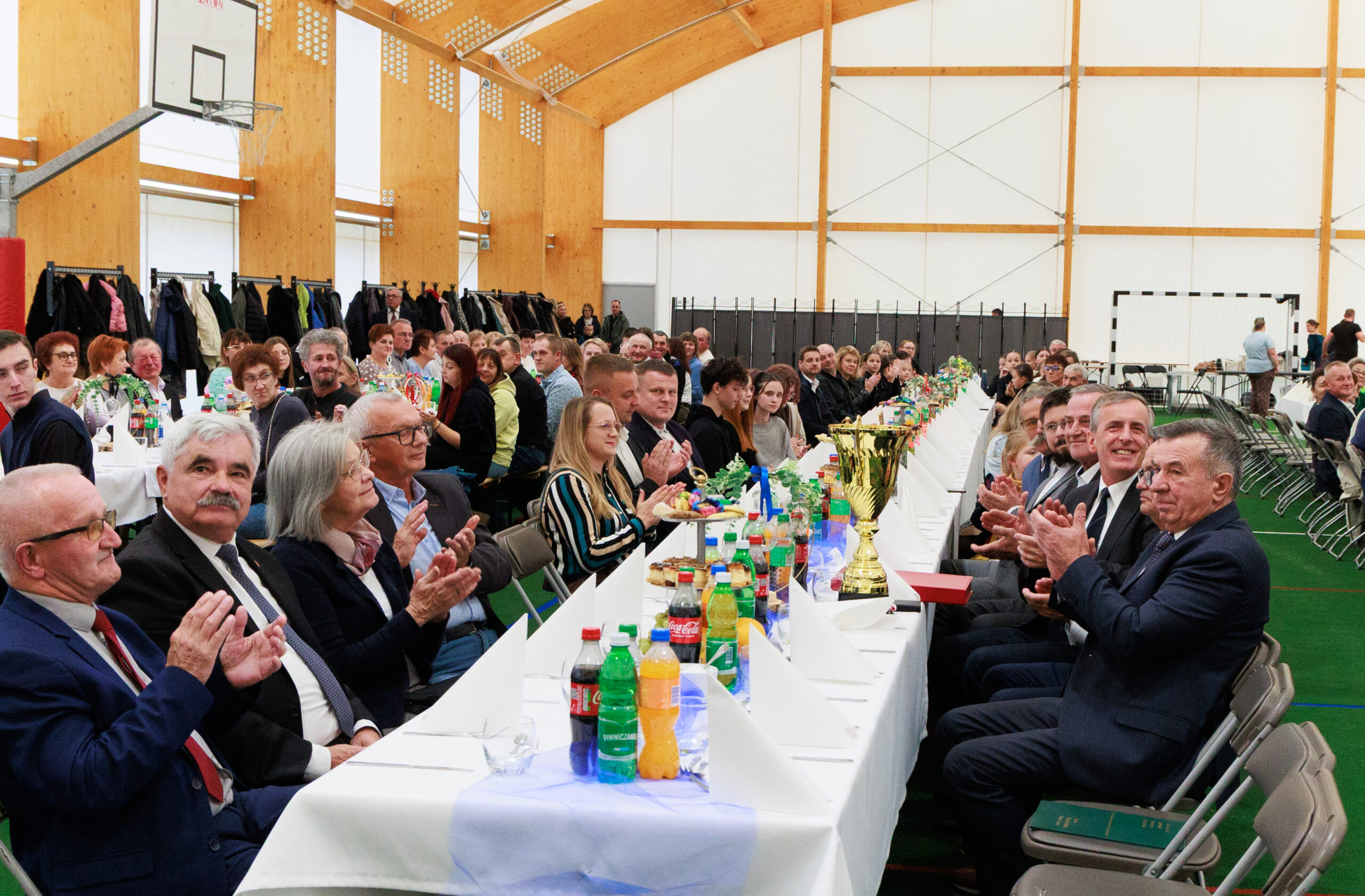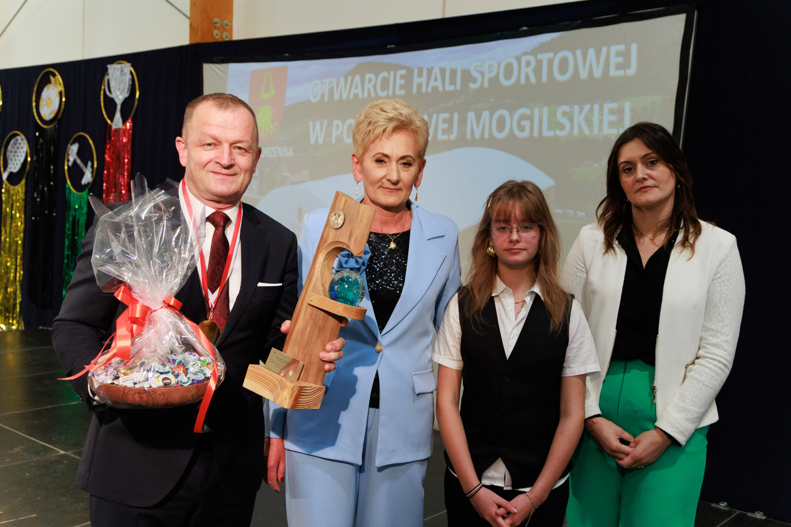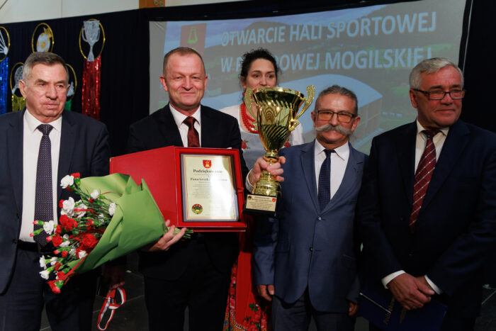 Były gratulacje i słowa uznania. Działacze sportowi – Czesław Kosiński, Jan Trybuch i Andrzej Zięcina – wręczyli wójtowi pamiątkowy puchar i medal. W imieniu uczniów i rodziców dziękowała również Barbara Kubiak, dyrektor szkoły w Posadowej Mogilskiej, która na co dzień korzystać będzie z nowego obiektu. Do podziękowań dołączył także sołtys i radny Mieczysław Górka, a zgromadzeni w hali odśpiewali wójtowi gromkie „Sto lat”.