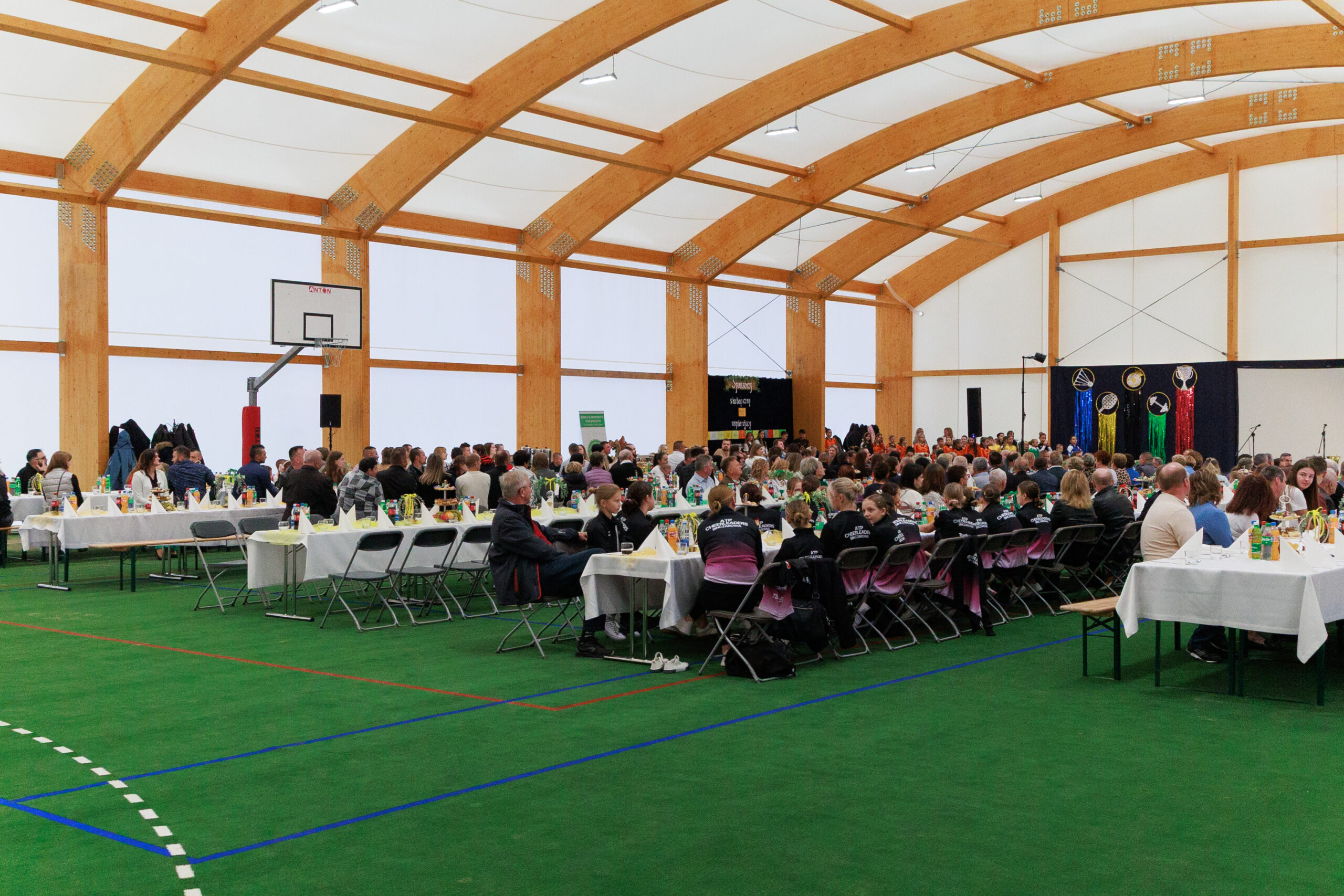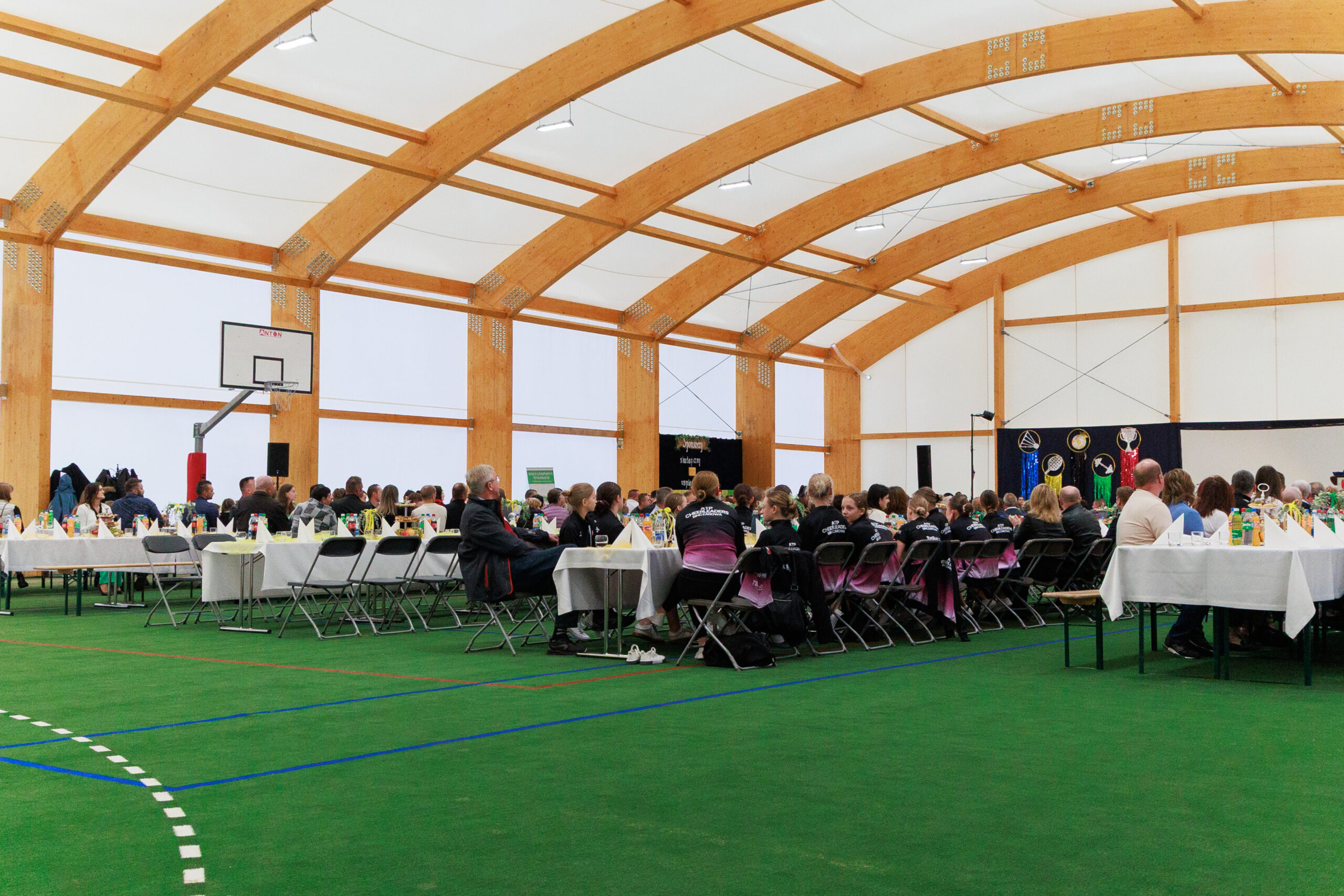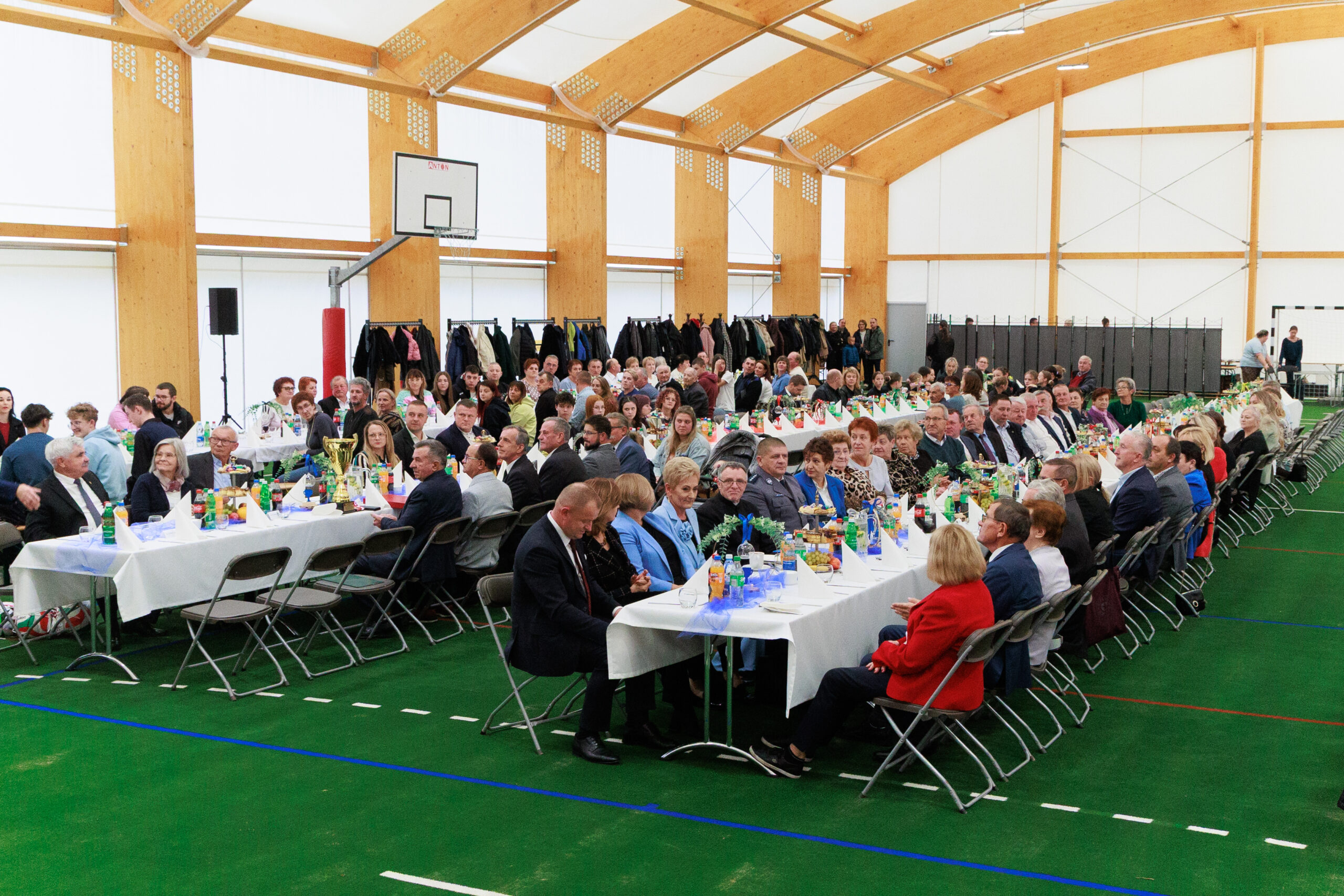 Były gratulacje i słowa uznania. Działacze sportowi – Czesław Kosiński, Jan Trybuch i Andrzej Zięcina – wręczyli wójtowi pamiątkowy puchar i medal. W imieniu uczniów i rodziców dziękowała również Barbara Kubiak, dyrektor szkoły w Posadowej Mogilskiej, która na co dzień korzystać będzie z nowego obiektu. Do podziękowań dołączył także sołtys i radny Mieczysław Górka, a zgromadzeni w hali odśpiewali wójtowi gromkie „Sto lat”.