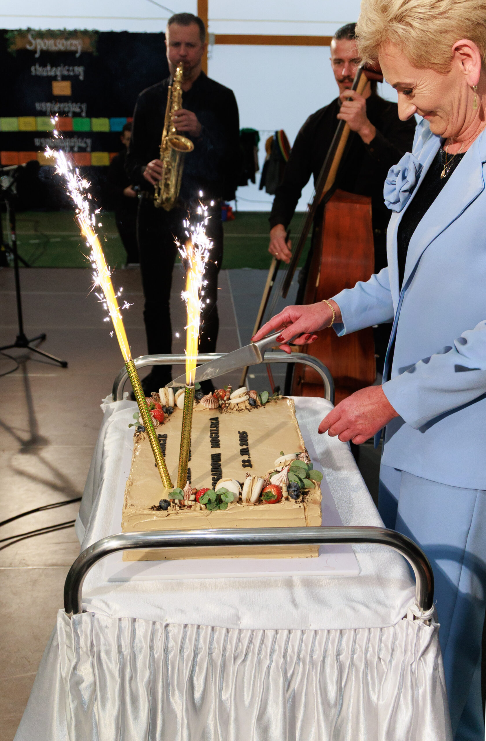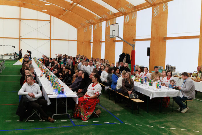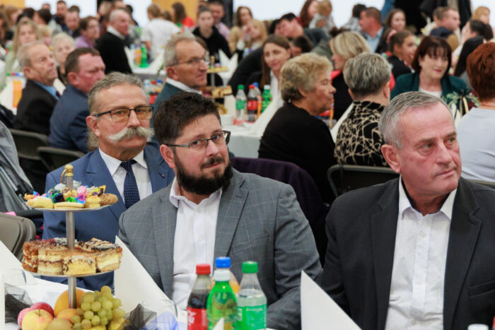 Po oficjalnych wystąpieniach i poświęceniu na scenie pojawił się okolicznościowy tort, który wspólnie pokroili wójt Leszek Skowron i dyrektor Barbara Kubiak. Przy wspólnym obiedzie można było wymienić się wrażeniami i porozmawiać o kolejnych inicjatywach dla gminy. O dobry nastrój zadbała trzyosobowa kapela przygrywająca znane wszystkim melodie.