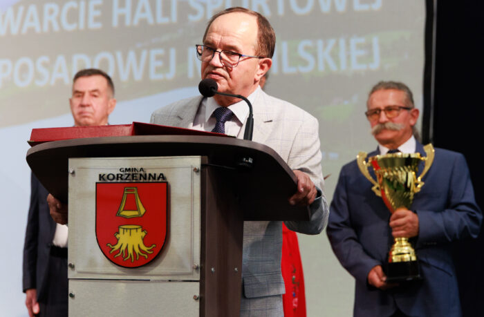 Nie zabrakło też wspomnień. Krótki film przypomniał, jak z trawiastego boiska urządzonego jeszcze w latach 80. powstał nowoczesny obiekt – symbol zmian, jakie w ostatnich latach zaszły w gminie Korzenna.