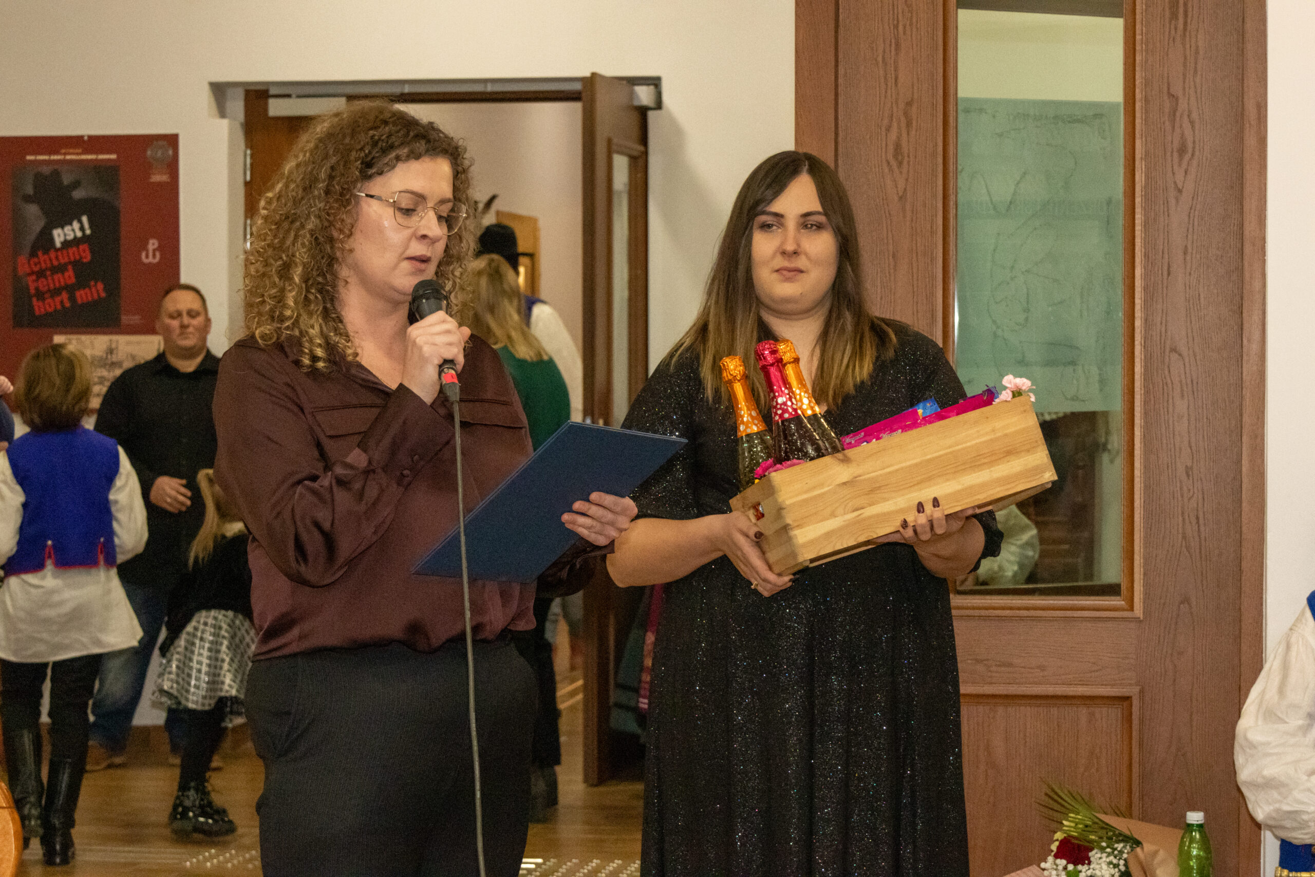 Po części artystycznej rozpoczęły się gratulacje. Doceniono kultywowanie wyjątkowej tradycji oraz poziom artystyczny zespołu, życząc mu dalszych sukcesów i ciągłego dopływu nowych tancerek i tancerzy. Goście obok miłych słów mieli także upominki rzeczowe oraz finansowe załączniki przeznaczone na działalność zespołu. Dzieci wręczyły gościom własnoręcznie upieczone pierniki w kształcie serc, które stały się jednym z najbardziej wzruszających akcentów wieczoru. Wśród prezentów dla gości znalazły się także okolicznościowe aniołki.