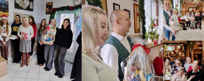 Uczennice i uczniowie przygotowali własnoręcznie wykonane kartki oraz bombki bożonarodzeniowe, które podarowali pensjonariuszom DPS. Atmosfera była nie tylko serdeczna, ale także bardzo świąteczna. Obok świątecznych symboli nie zabrakło także bożonarodzeniowych obyczajów, a w szczególności wspólnego kolędowania.