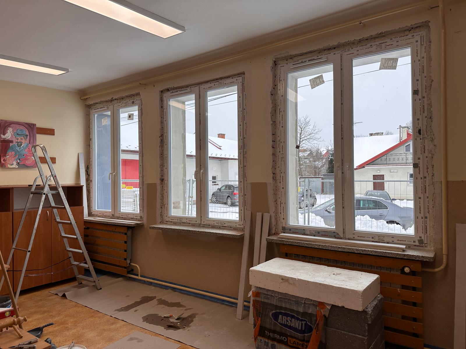 Na obecnym etapie wymieniono już większość okien, a budynek zyskał nową elewację. Dzięki dociepleniu ścian zewnętrznych szkoła będzie znacznie mniej energochłonna. Przełoży się to na mniejsze zapotrzebowanie na energię potrzebną do ogrzewania i oświetlenia obiektu.