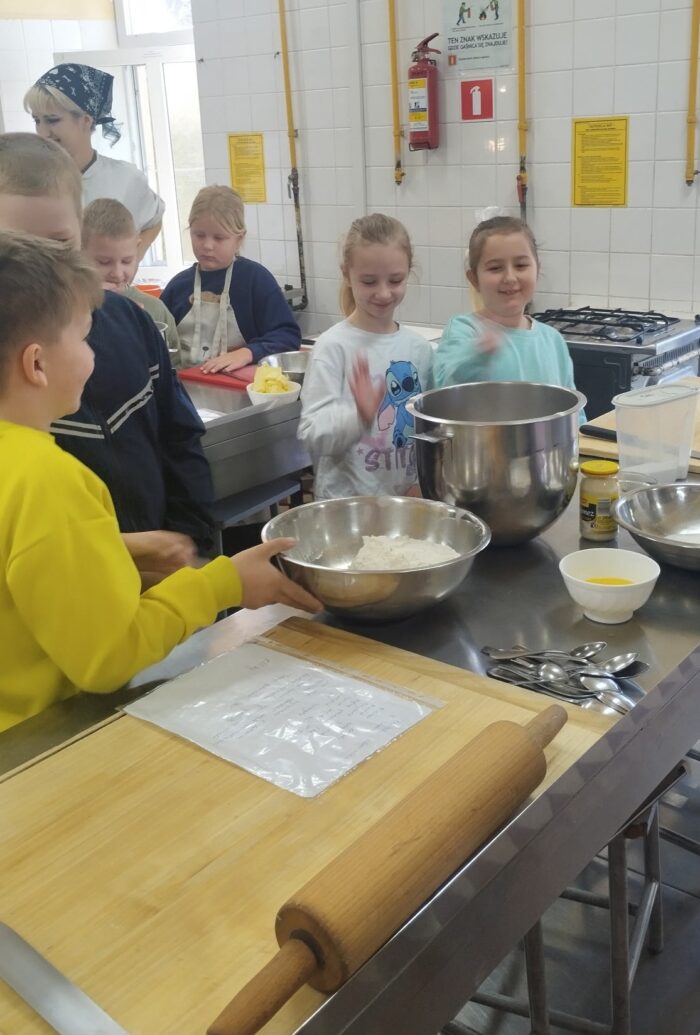 Słodka lekcja odbywała się w Zespole Szkół nr 1 im. Komisji Edukacji Narodowej w Nowym Sączu. W ich trakcie grupa 20 uczennic i uczniów klas I–III Szkoły Podstawowej w Posadowej Mogilskiej najpierw przyglądała się, jak przygotowuje się słodkości, a następnie pomagała piec ciasta.